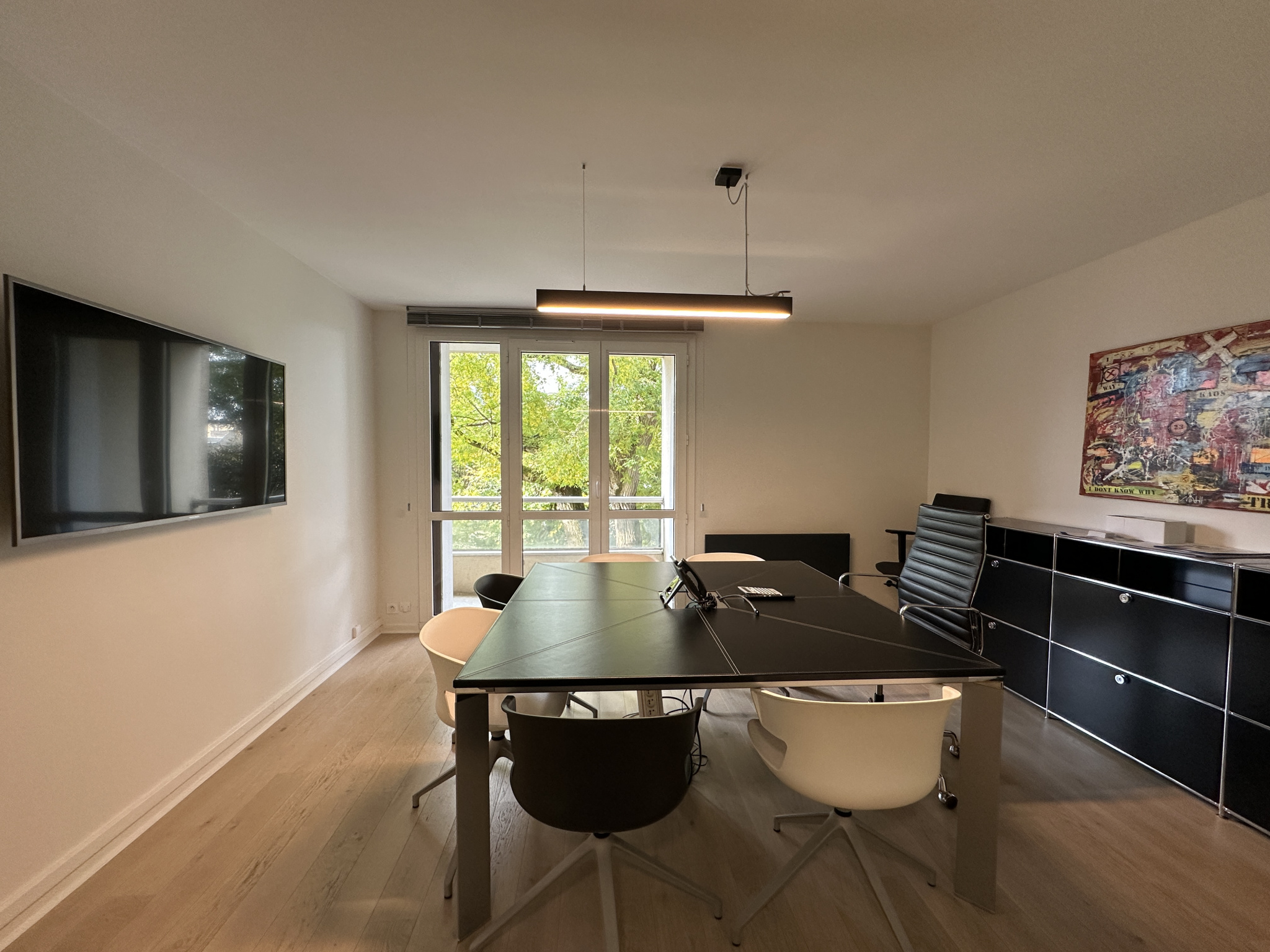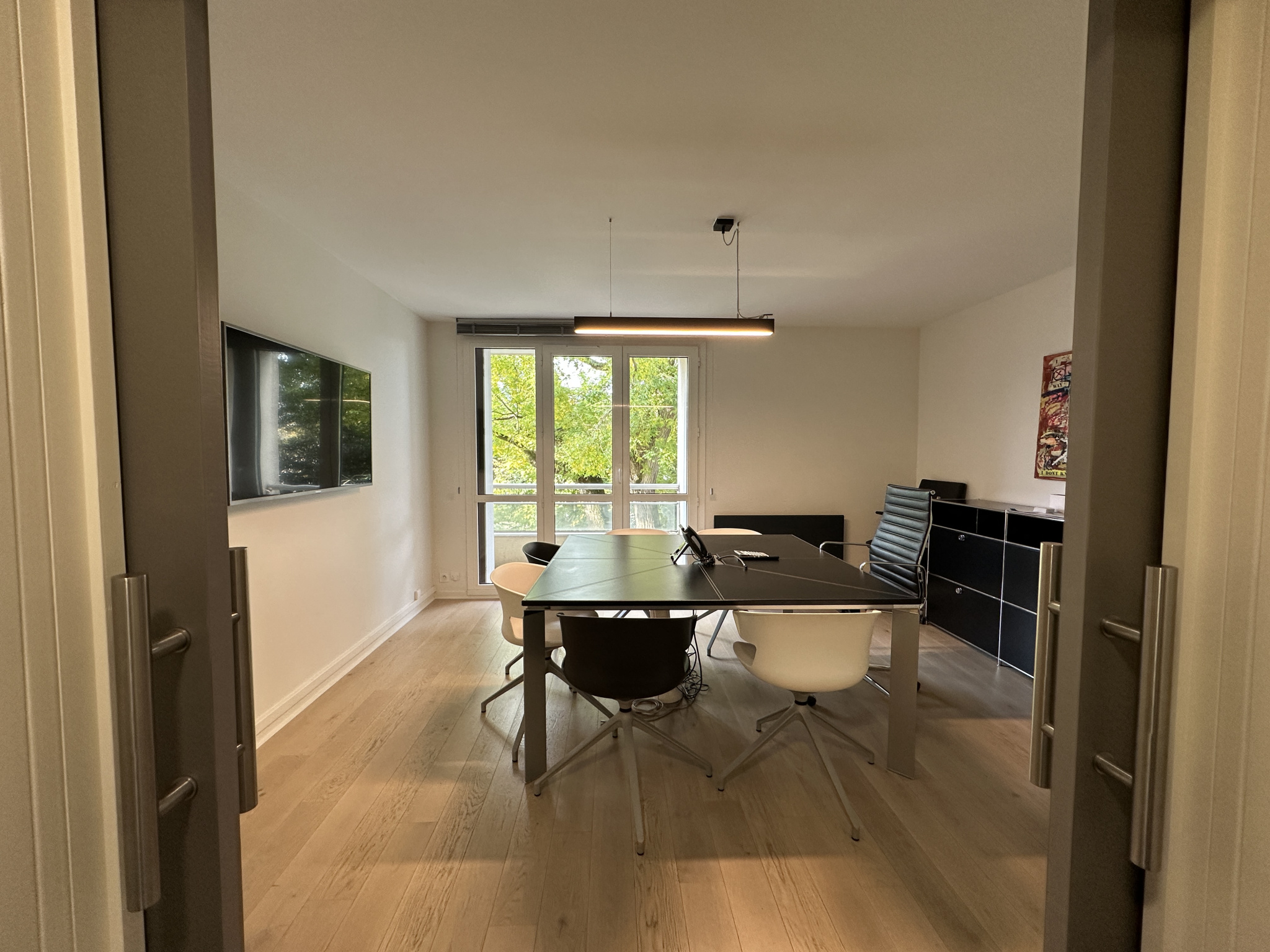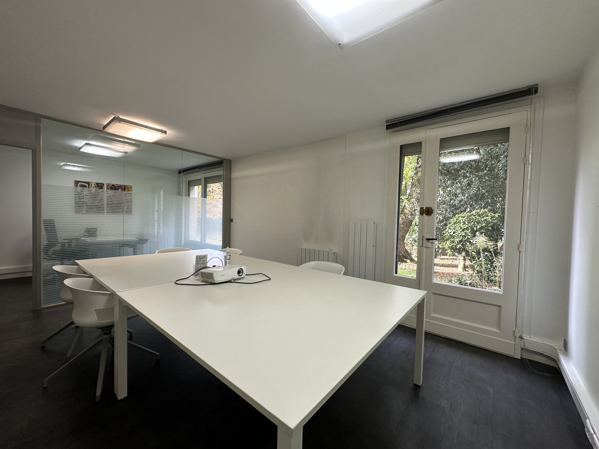 Au Rez de jardin, un bureau et une salle de réunion avec sanitaires.