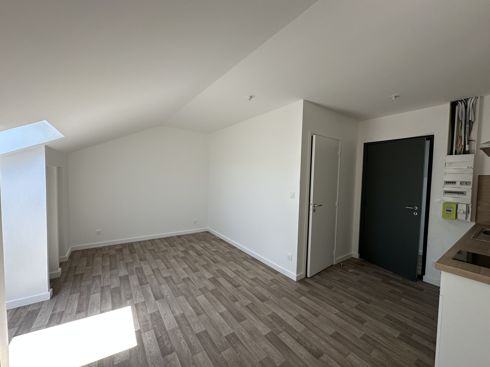 Situé au 3 ème et dernier étage, ce studio comprend une entrée avec cuisine équipée, un pièce principale avec rangements en sous pente.