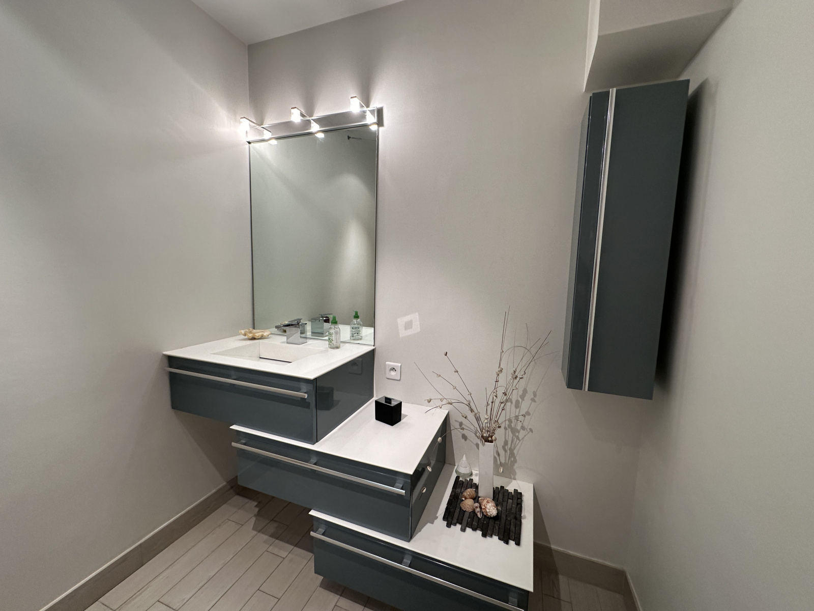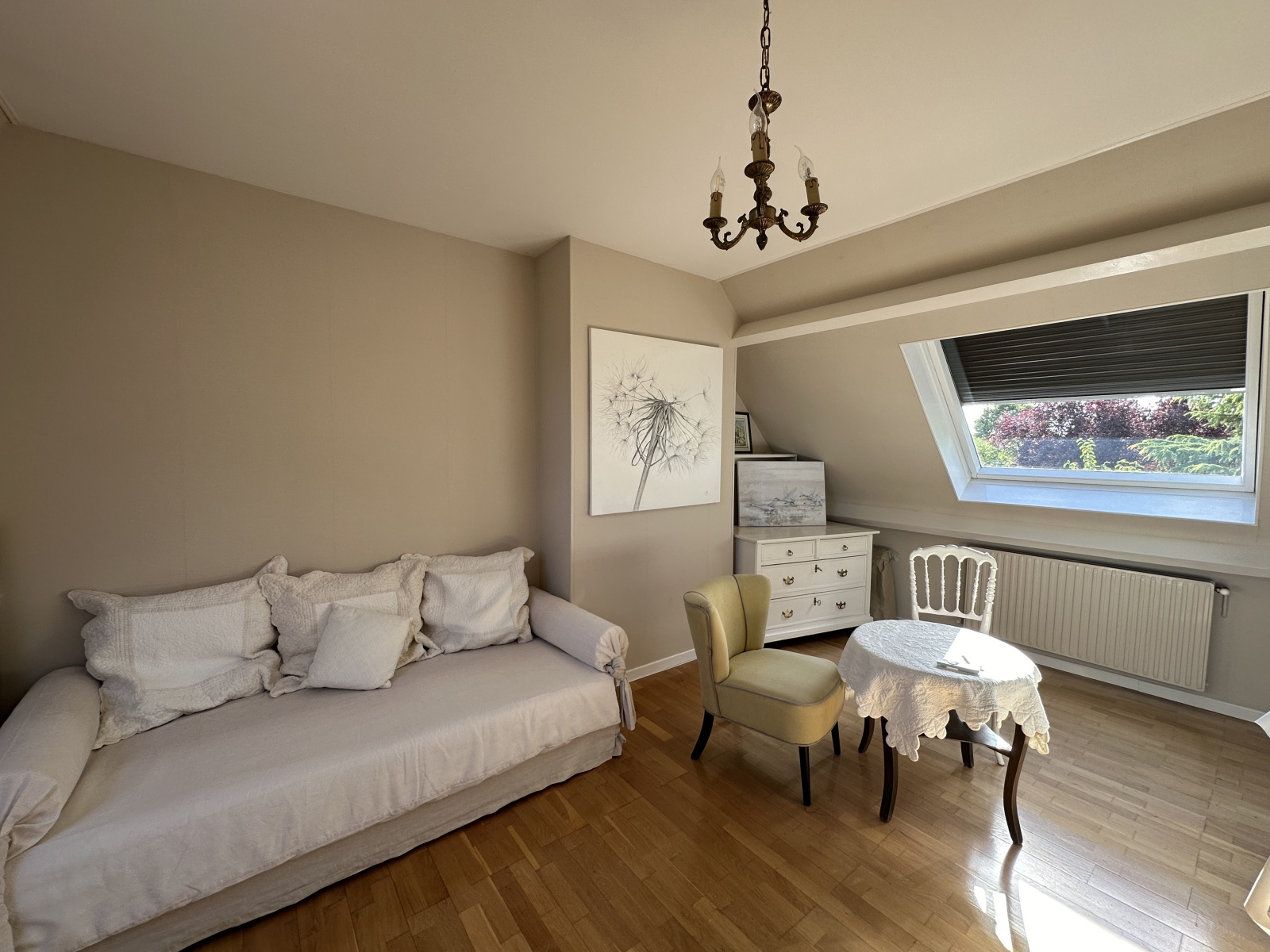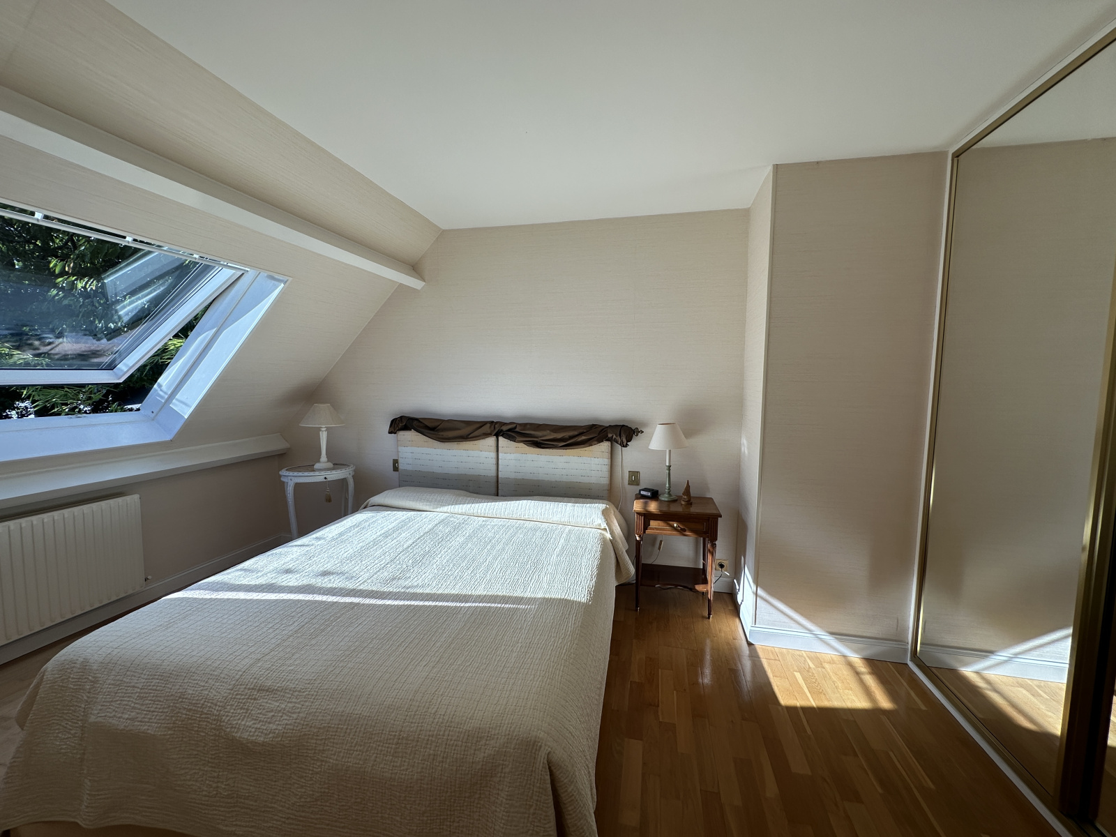 Au RDC l'entrée s'ouvre vers le séjour et la cuisine équipée orientée vers le jardin, le salon traversant ainsi que l'espace nuit du RDC (avec SDE récente).