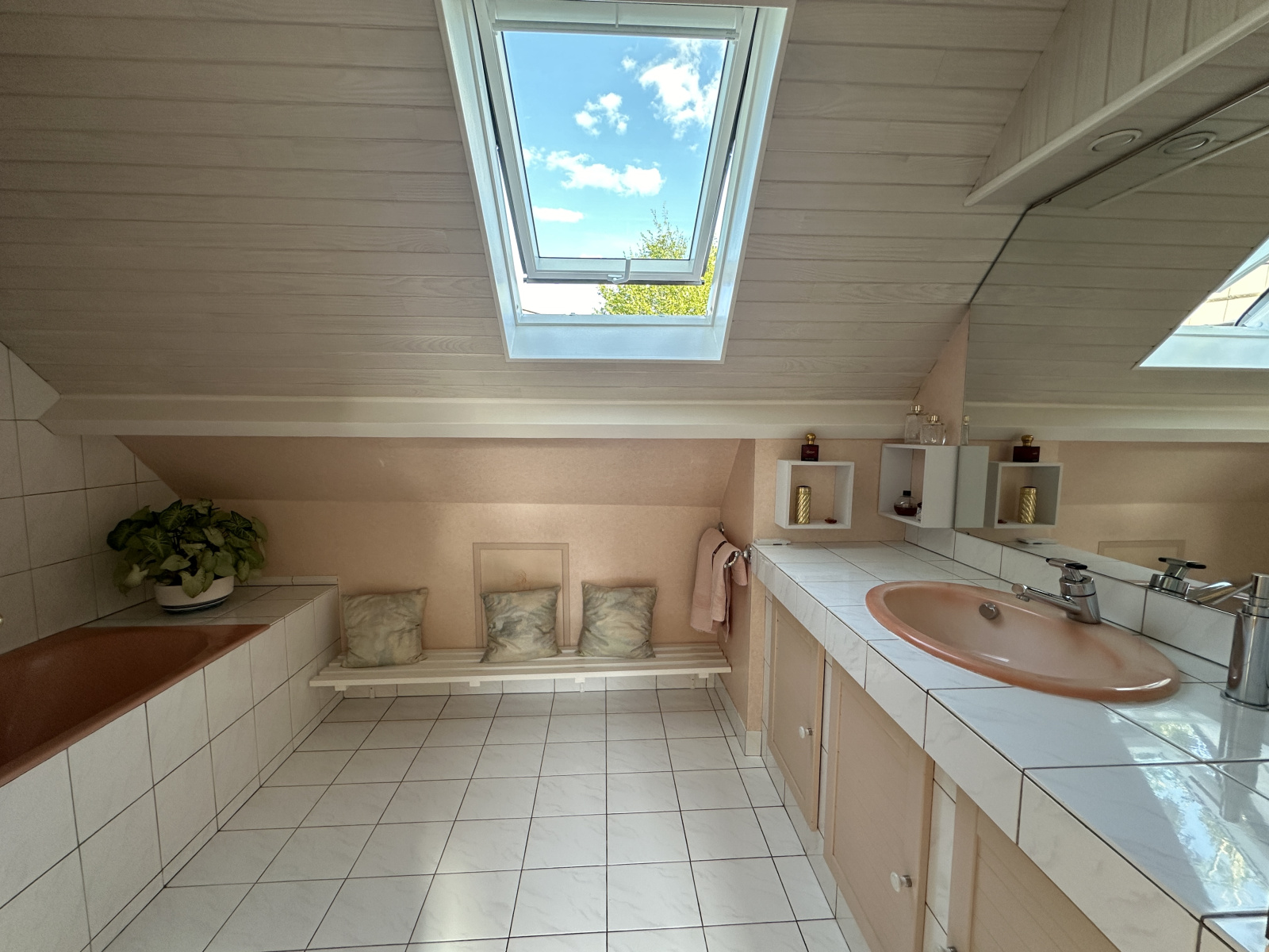 Une buanderie et un garage double avec combles complète la maison. Le jardin intimiste bien pensé et végétalisé contient un espace potager, plusieurs massifs et un forrage pour l'arrosage automatique. La parcelle est cloturée.